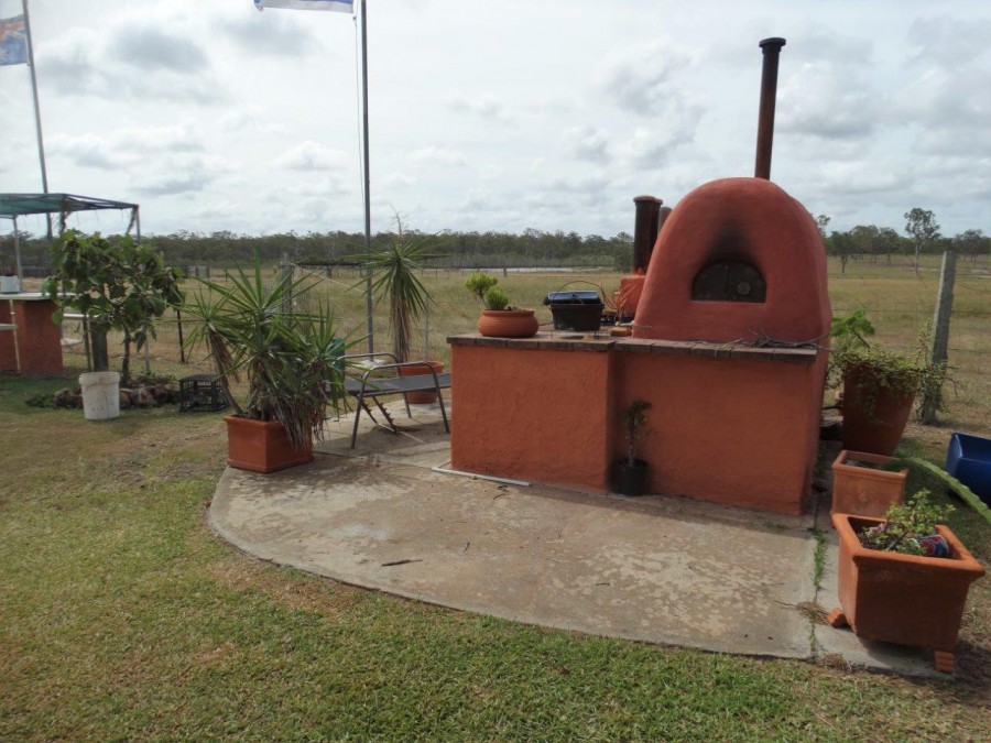 Close by is a 28m x 18m shed with and adjoining 18m x 12m shed - large enough for the boys' toys, workshop, storage etc. Mains power is connected and there is a 3kva feed back to the grid solar system. Gardens are irrigated from the bore which also supplies water to the yards and down the driveway. There is a BBQ area and pretty impressive pizza oven. Hot water is electric and total rainwater collection is approx. 20,000 gallons.