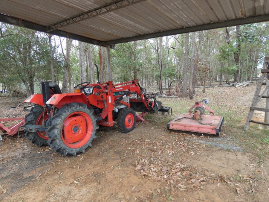 Ranging between 43m & 60m above sea level, most of the block is selectively cleared. It is fully fenced with the house yard fenced separately. There are two dams and a good bore which supplies water for outdoor use. Close to the home is a workshop, chook pen, vegetable garden & undercover BBQ area.