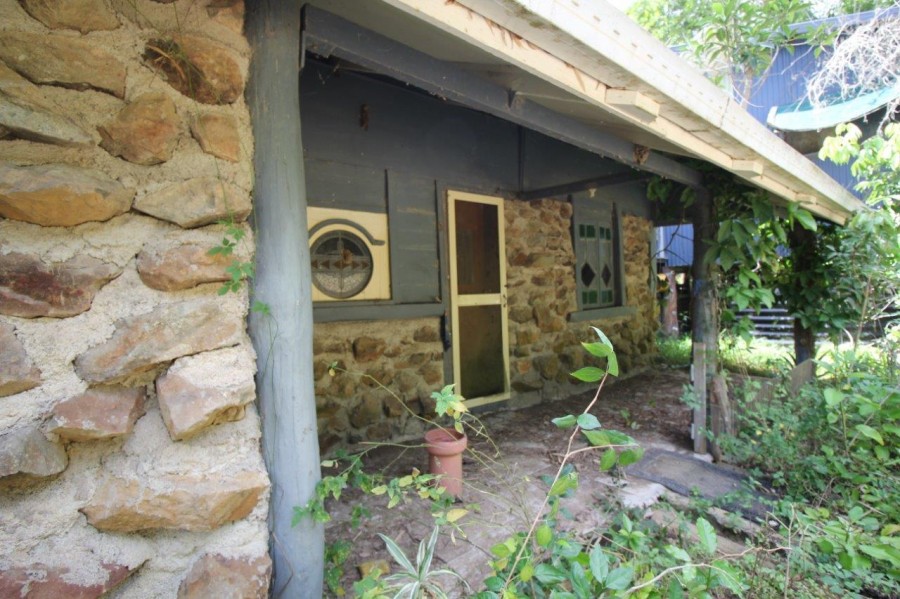 The creek-front portion of the land, approximately 19 acres, offers a lush subtropical setting with mature trees and an abundance of established fruit trees. There are two dams on the property, and mains power is already connected, running to a meter box and both existing dwellings. While the dwellings haven't been lived in for some time, they offer potential for renovation or could provide materials for a new build. An old machinery shed adds extra storage or workspace.