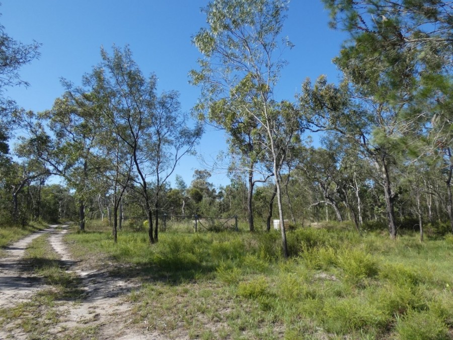 The land ranges between approx. 20m & 25m above sea level and features two dams. The front dam has a pump to irrigate the small orchard the owners have started, while the dam near the dwelling includes an island accessed by a bridge. There are also a couple of seasonal creeks, one with the occasional small waterholes, and tracks have been pushed around most boundaries and throughout the property.